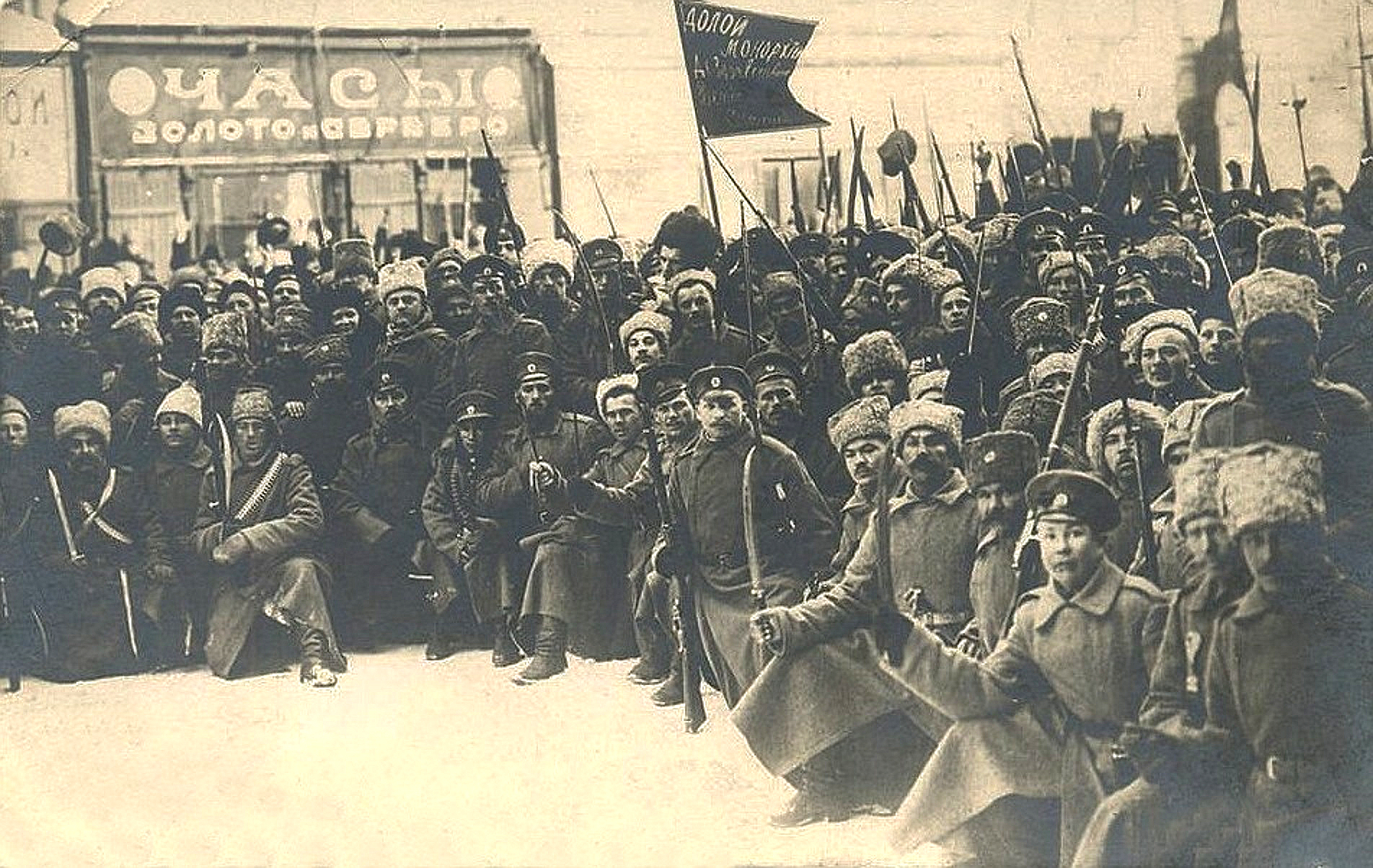 Am internationalen Frauentag, dem 23. Februarjul./8.greg. März 1917 (Im Folgenden: Zwei Daten mit Schrägstrich getrennt – Julianischer Kalender/Gregorianischer Kalender. Ein Datum – Gregorianischer Kalender) entstand aus einer Brot-Demonstration von Arbeiterinnen der Putilow-Werke in Petrograd die Februarrevolution. Demonstrationen und Streiks hatte es im Winter 1916/17 schon öfter gegeben, aber an diesem und am nächsten Tag wurde in immer mehr Fabriken die Arbeit niedergelegt. Am 25. Februar/10. März erschossen noch Soldaten des Wolhynischen Garderegiments über 60 Demonstranten und Streikende, andere Truppenteile der Petrograder Garnison verweigerten bereits den Feuerbefehl oder wechselten sogar die Seiten. Aus Demonstrationen und Streiks war ein Aufstand geworden, der sich im ganzen Land verbreitete. Am 27. Februar/12. März wechselten schließlich der Großteil der städtischen Garnisonen auf die Seite Revolution, denn jetzt war es eine Revolution.